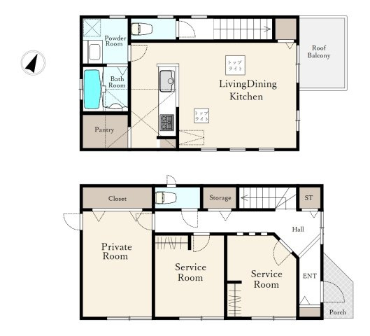 2階建 3LDK 大型ファミリークローゼット ルーフバルコニー カースペース付